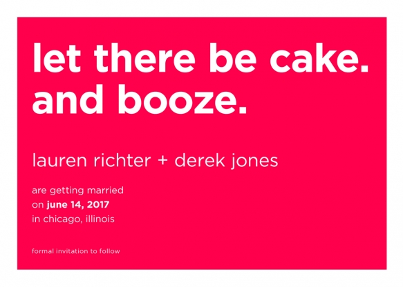 'Let there be cake. And booze' - we think this design (4) has got mass appeal! The bright bold colourway and sharp font keep it looking very modern, too. Check out this hand illustrated design (31); the flow chart is equal parts cute and funny. If you and your guests appreciate a good pun, consider this card (3), with an unfortunate date heading into a mouth screaming 'noooo!' If you don't mind raising a few eyebrows, we love this 'sh*t just got real' magnet (12), which, let's be honest, is how most of us feel!