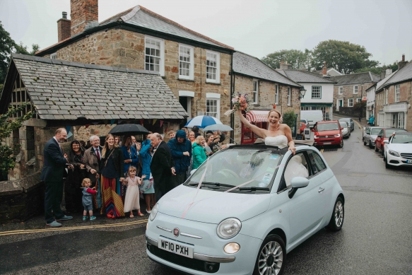 However, with the weather not complying on the day - "it was so windy and wet!" - the couple were determined not to let it rain on their parade. "We left in a Fiat 500 convertible," laughs Emily. "With the top down - even though it was raining!" After the service, the couple went down to Chapel Porth Beach for photographs. "It was great - the beach was empty because it was so rainy, and it was great fun just being able to relax and get sand between our toes."