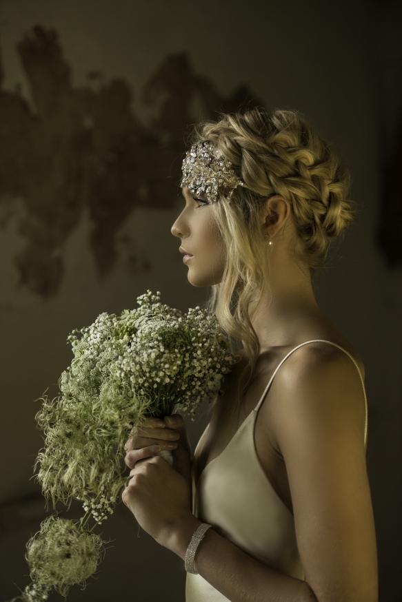 Seeking something fresh, modern and a little daring? Ensure all eyes are on you with this statement-making look. "We're seeing more and more 'out of the ordinary' photo shoots, pushing the limits on what you can do," says hair stylist and make-up artist, Leah Toomey. "Our model had amazing bone structure and enchanting brown eyes, matched with stunning golden-red locks. A simple braid across the hairline swept all of the hair back from her face."