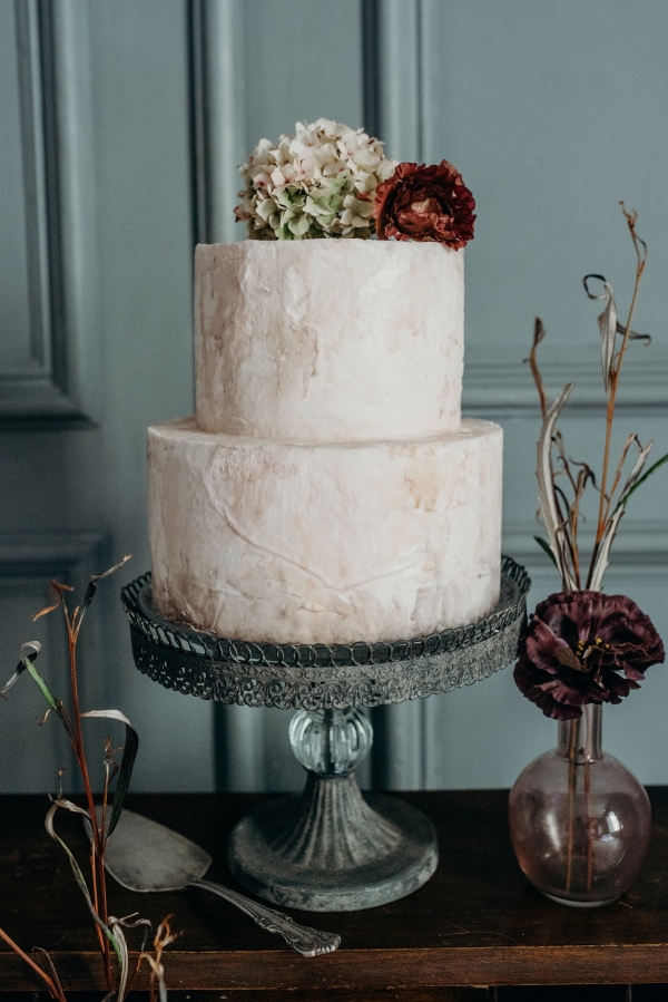 Silk runners, soft fabrics and lavish veils complete the sumptuous mood, with the additions of rustic shutters and a bare plaster-inspired cake adding further industrial elements. "Finishing touches of scattered petals mean everything just feels like it has fallen there," says Nikki of this beguiling fusion.