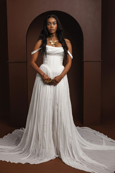 Rue De Seine's dresses are romantic, ethereal and showstoppingly beautiful, blending unique embroideries with flowing silhouettes. Head to St Ives Bridal Boutique to peruse a collection filled with boho cuts, dreamy floral embroidery and irresistible shimmery detailing.