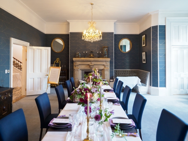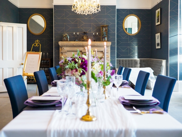 Shot at the last Devon WedMeetUp that was hosted at the stunning Paschoe House, this editorial combines opulent colours and ornate details for a reception space that oozes elegance.