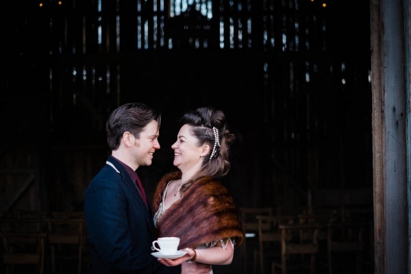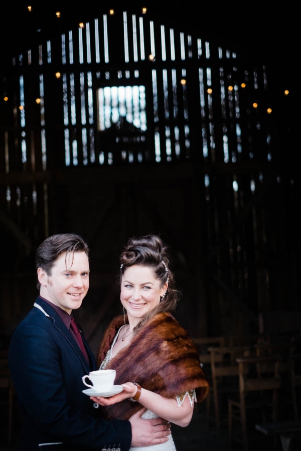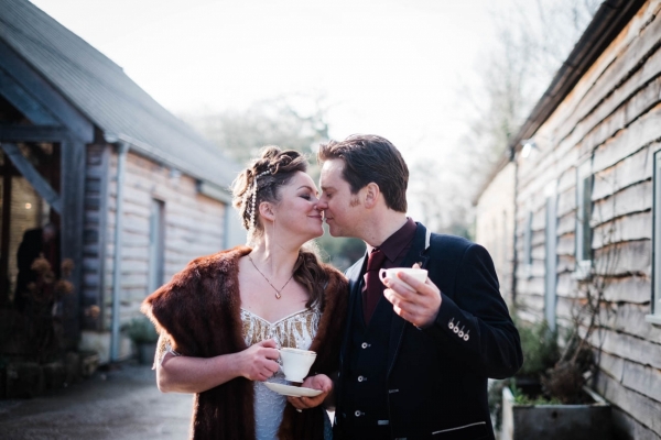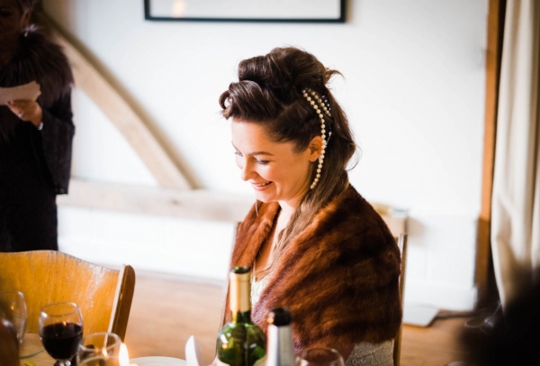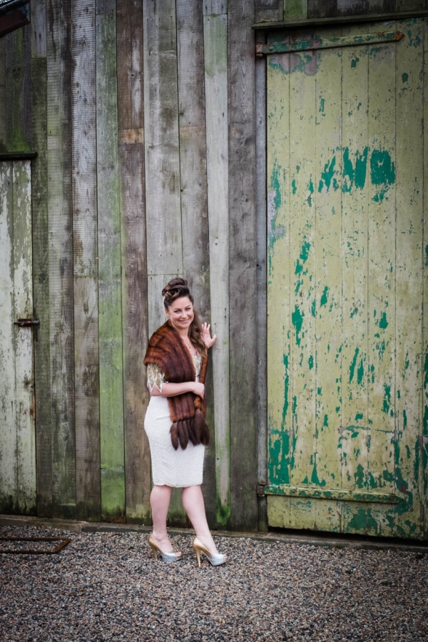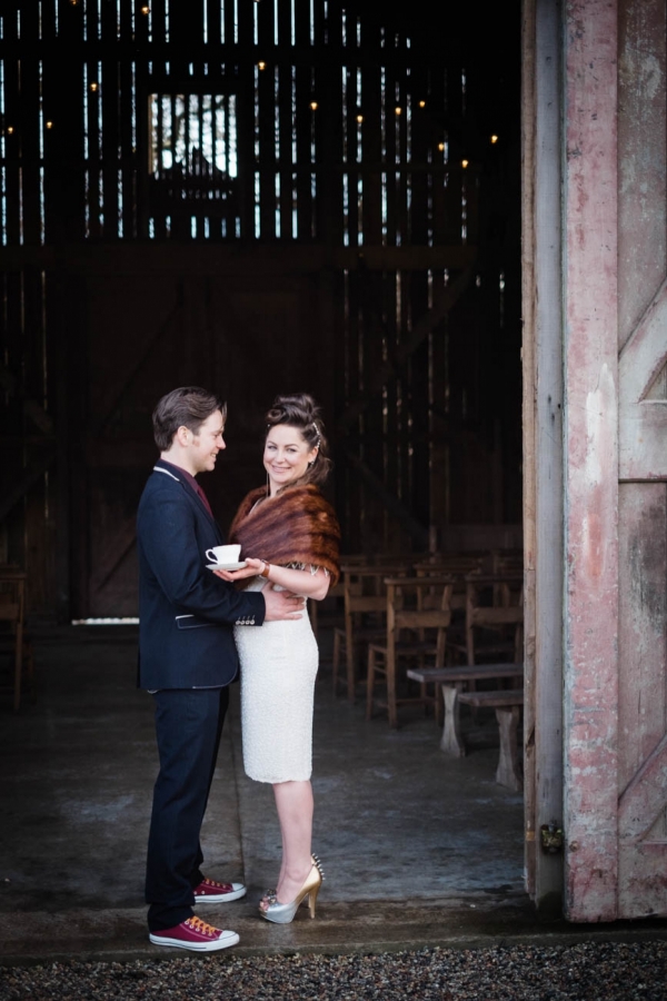 Fashion played a huge part in Alana and Mike's wedding, with the bride showcasing a haute couture two-piece suit with bespoke feather crown and blue heels for the morning's registry office nuptials, before changing into a vintage cocktail dress and fur for the afternoon and evening. Mike sported a suit and Converse trainers throughout the day and evening, not to mention a black eye from the snowball fight the night before!