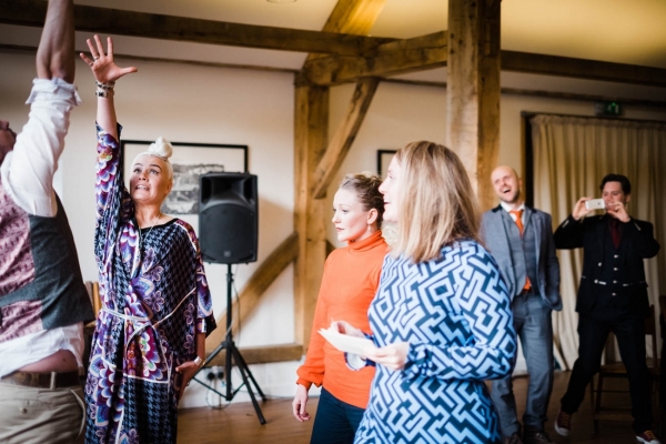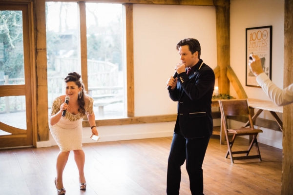 "During the meal, we had a pub quiz with questions about the bride and groom plus picture rounds and balloon modelling. Unbeknownst to us, we had our own challenge set to create a speech in the style of a rap. We also made the guests do speeches in table groups - some were performance-based so that was pretty entertaining," says Alana.