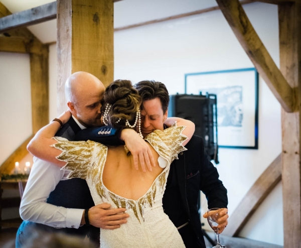 After a "bleary-eyed legal ceremony at the registry office", Alana and Mike's focus was on their celebrations with all their family and friends - but the weather had other ideas! "Our wedding fell on the week of the storms and only 30 out of our 70 guests could make it, which was not so great but we made the best of it!" Determined not to let anything rain on their parade, Alana and Mike embraced all the fun of their big day. And with so many creative people in their friendship circle, the couple's talented pals pitched in to do everything from the hair and make-up to flowers and even act as celebrant at their fun-filled ceremony.