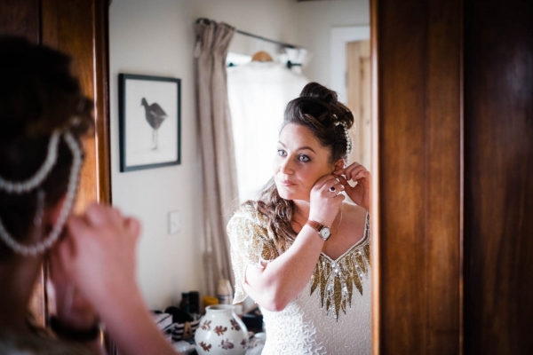They decorated their venue, Nancarrow Farm, with foraged ivy, daffodils, primroses and violets, alongside spider plants, shells and candles. "The inspiration for the styling was the venue, and the people around me are brilliant and can make amazing things happen," says Alana of their decision not to have a particular theme or colour scheme.