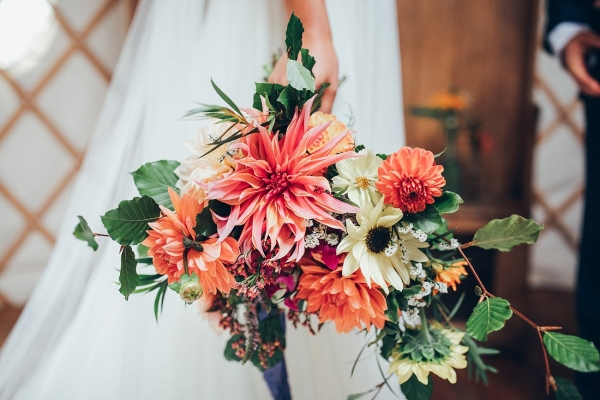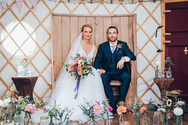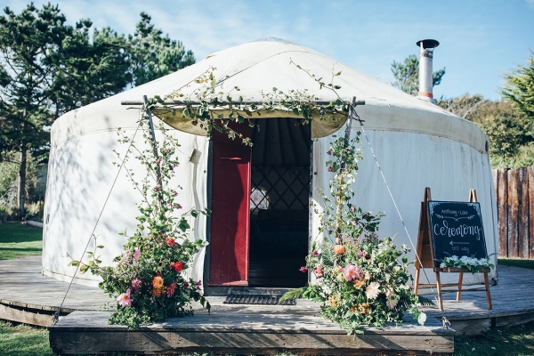 A rustic yurt and contemporary reception space filled with a carnival of colourful blooms and hand-painted stationery sets the scene for a vibrant and joyous occasion at The Park Cornwall, an exclusive five-star holiday park located within pebble-hurling distance of Mawgan Porth Beach.