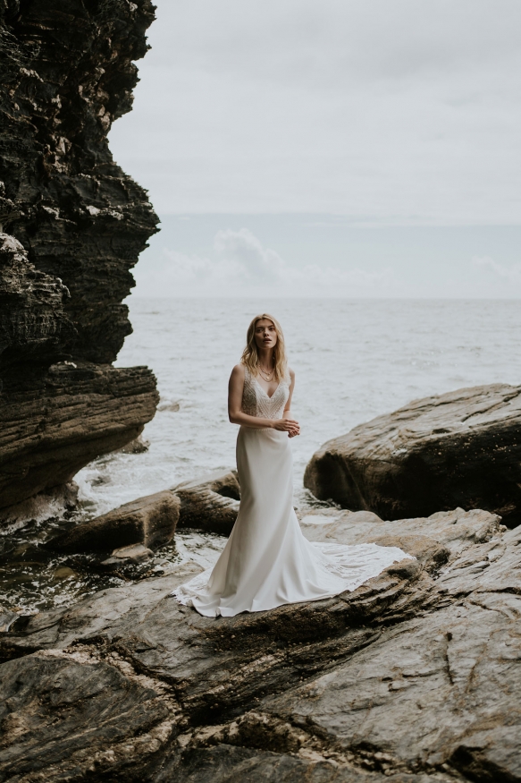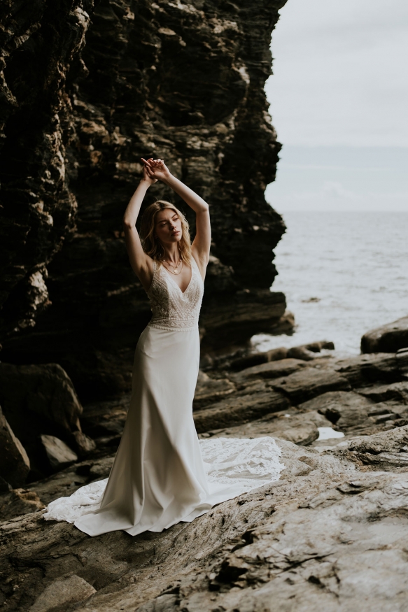Amidst the wild, storm-lashed rocks of west Cornwall's coastline, where the Atlantic rollers meet the most mesmerising cliffscapes, our bridal fashion forecast is for effortlessly beautiful silhouettes elevated with captivating bursts of modern detailing