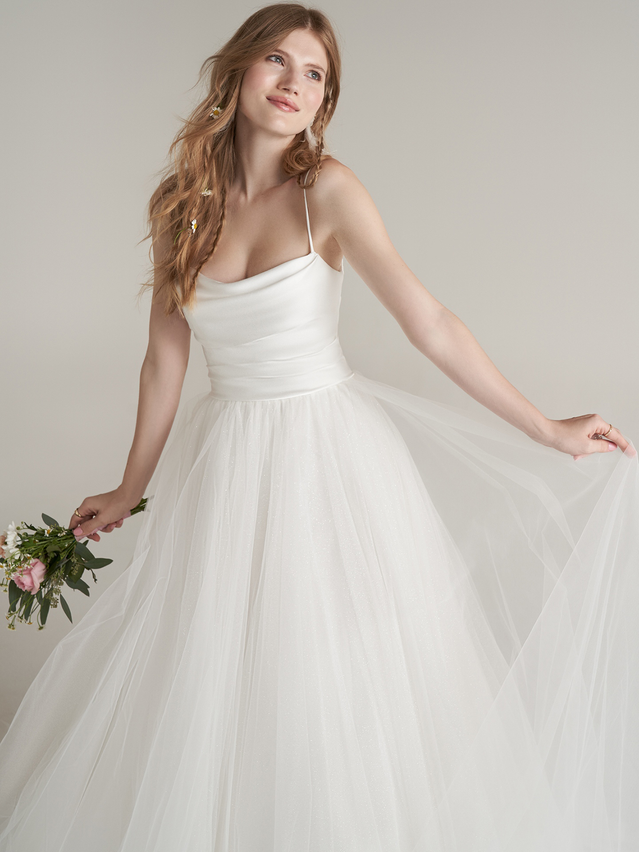 Another new arrival, the latest collection from Rebecca Ingram brings effortless beauty and whimsical silhouettes to the rails. Brides with a weakness for sparkle will love the gold shimmer of Florie, while those seeking minimalist style will fall for the timeless sophistication of Jakayla; then there’s the sparkle tulle skirt and stretch satin bodice of Vivien, complete with a trending square neckline.