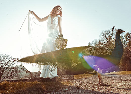 We relished the sunshine and sheer beauty of a day at Pentillie Castle and Estate shooting our bridal fashion spread 'A Vintage Romance'. The first signs of spring had begun to stir and the estate was poised to burst into life. It was the perfect setting to capture an exquisite collection of gowns, embellished with elegant lace and glamorous jewels - not to mention Pentillie's resident peacock, Charlie, who made it onto our front cover!