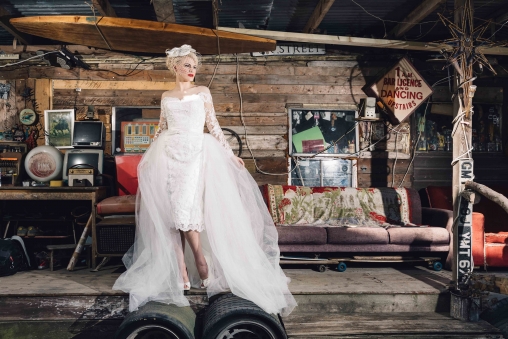 Our bridal fashion spread, 'Love Shack' sets the mood with its showcase of party-ready dresses. Shot in a veritable Aladdin's cave of cool, retro finds in west Cornwall, we enjoyed a laugh-a-minute day in the sunshine capturing these fun and fabulous '50s inspired frocks teamed with super-chic headwear. Shrinking violets need not apply.