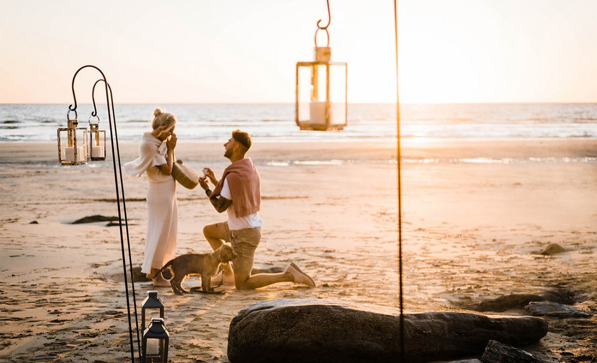 Sometimes it’s the moments that can’t be planned that make a proposal. Brian cites a favourite memory of a sunset proposal at Watergate Bay last autumn. “The couple had their dog with them and at the very moment he popped the question another dog appeared,” he recalls. “It looked like the dogs were having their own proposal!”