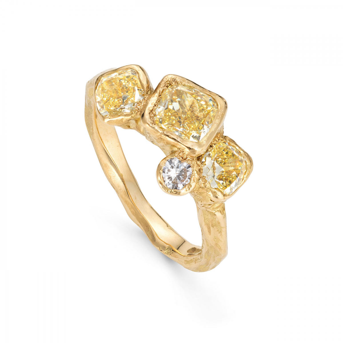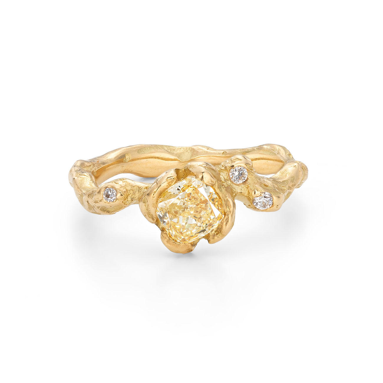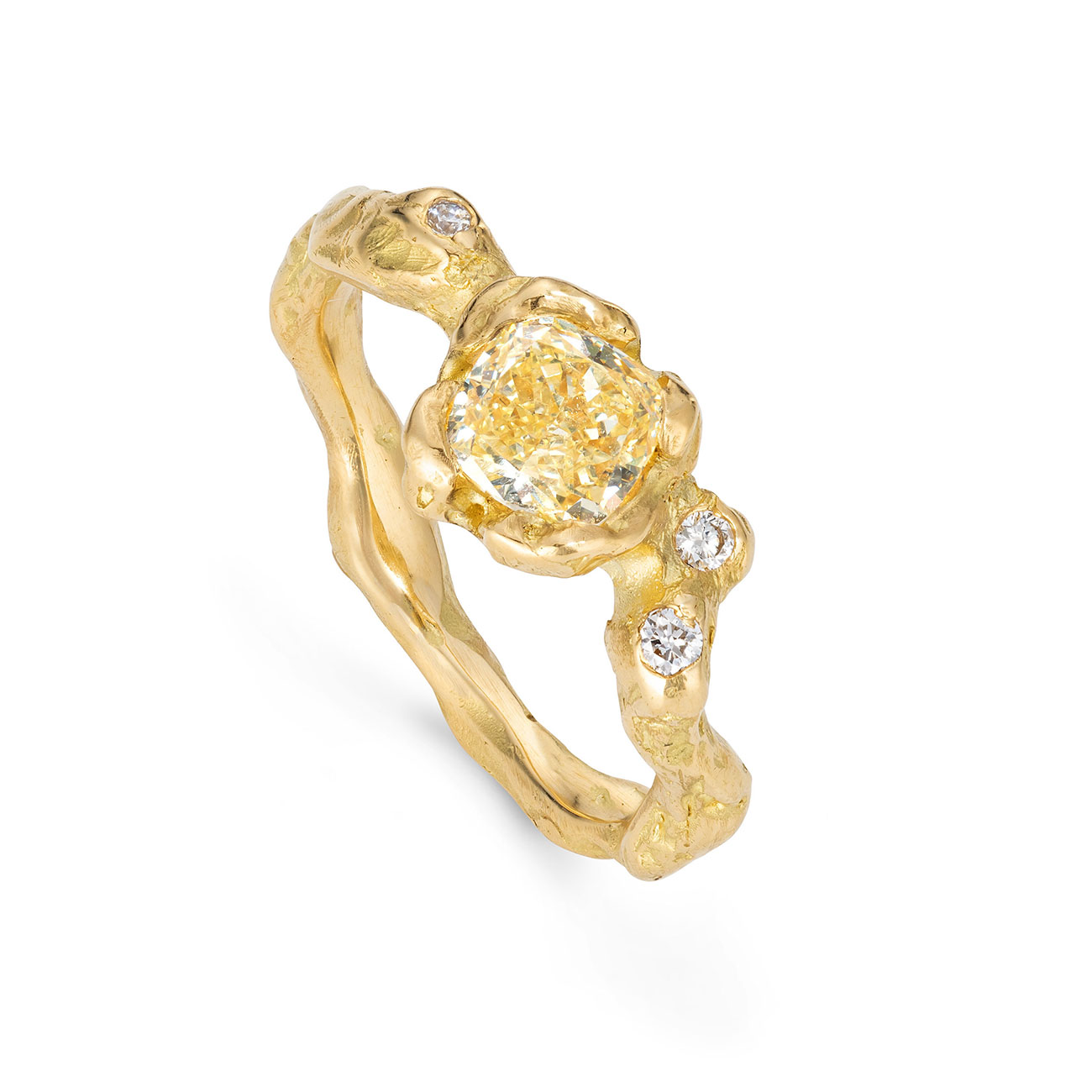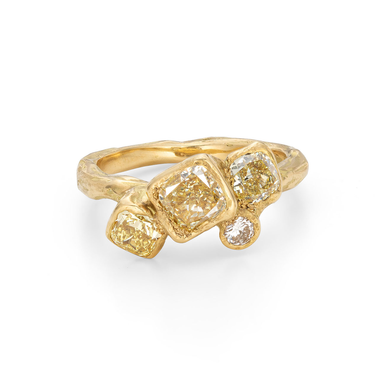 Continually inspired by her home on the edge of West Cornwall, Emily Nixon’s jewellery evokes the ocean’s magic in the most captivating way. Her latest collection is entitled Sea Glitter and comprises glittering rings using the rare palette of yellows found in fancy diamonds. “This collection of the sunlit hues of fancy diamonds combined with smoothed sea-worn gold is an ode to the feeling of swimming through the far-reaching sparkle of sea glitter,” she says.
