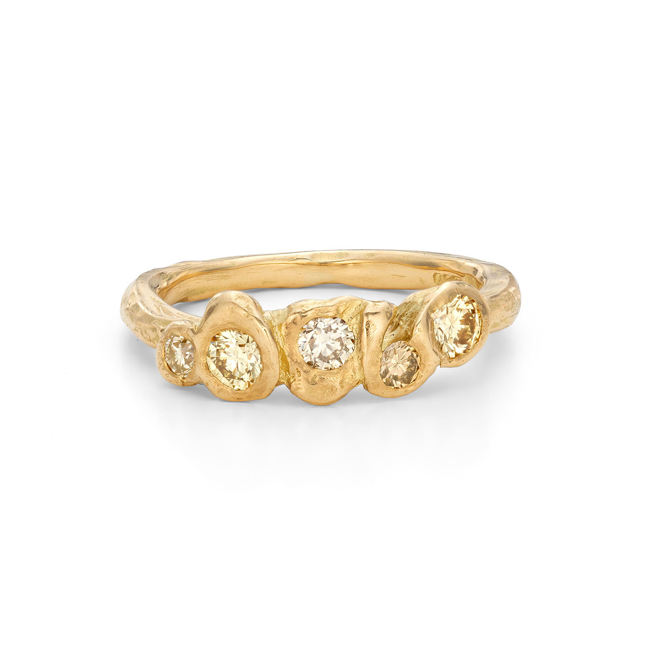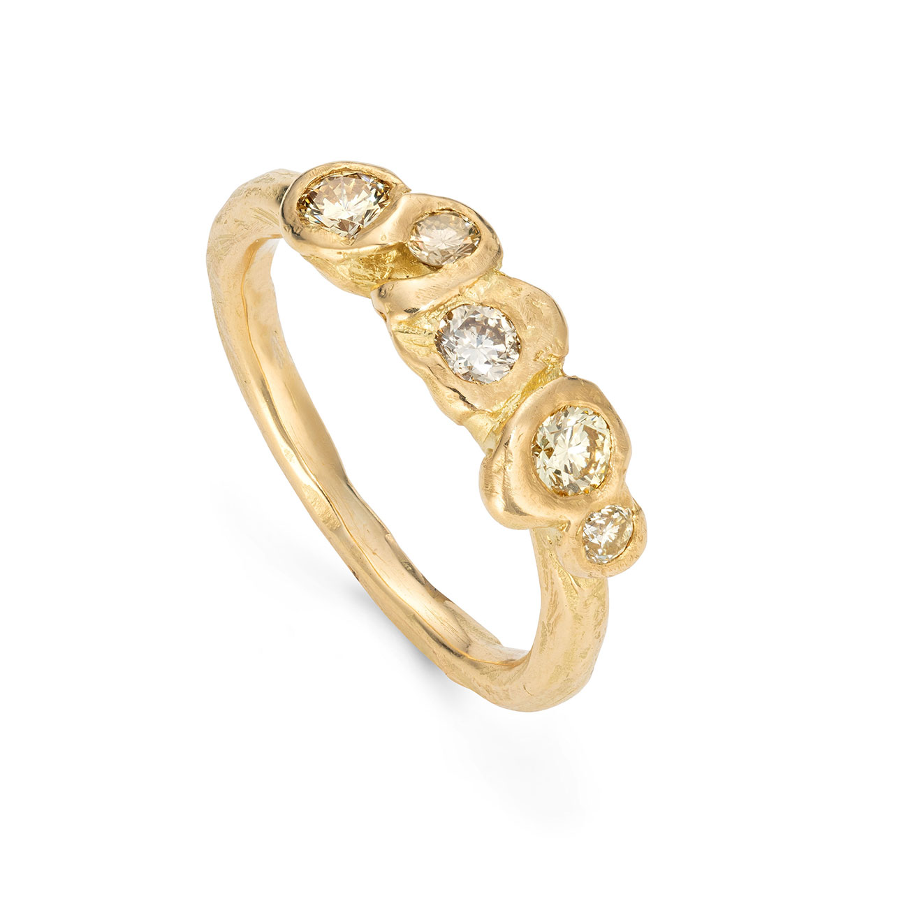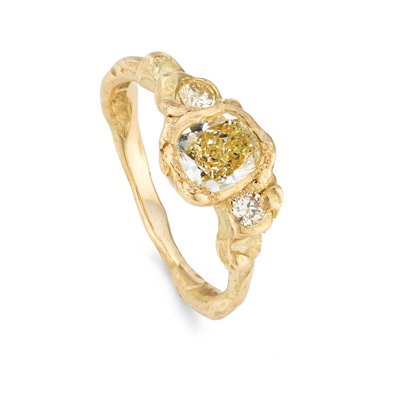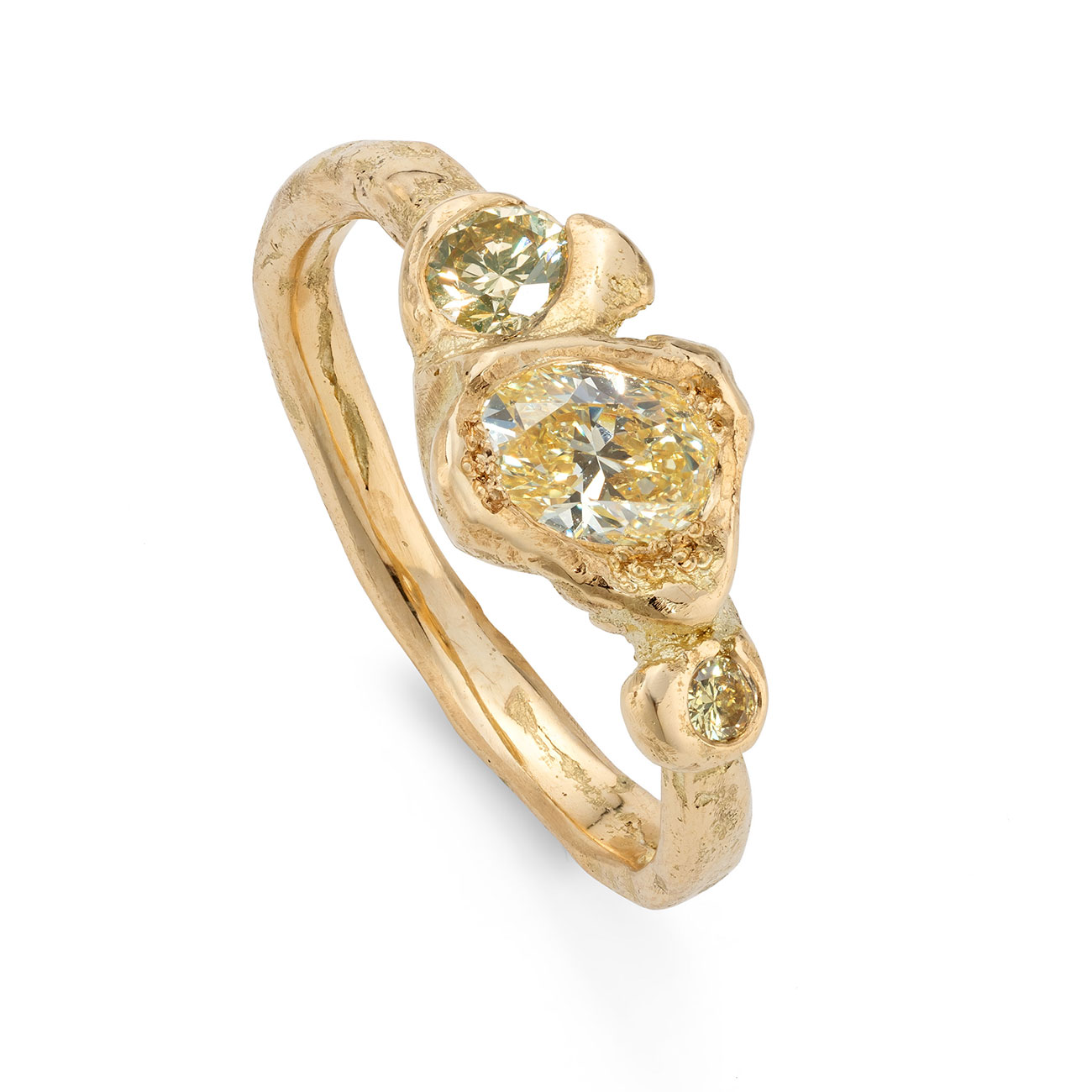 Continually inspired by her home on the edge of West Cornwall, Emily Nixon’s jewellery evokes the ocean’s magic in the most captivating way. Her latest collection is entitled Sea Glitter and comprises glittering rings using the rare palette of yellows found in fancy diamonds. “This collection of the sunlit hues of fancy diamonds combined with smoothed sea-worn gold is an ode to the feeling of swimming through the far-reaching sparkle of sea glitter,” she says.