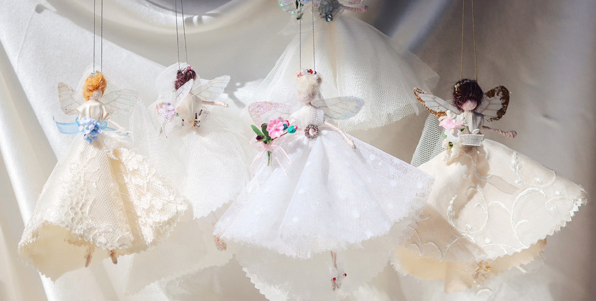 Seeking a bridal gift with a difference? The new bridal fairies from Cornwall-based bridal wear designer Caroline Fricker are made with love and guaranteed to bring happiness. Handmade with the finest silks, French lace, embroidered organza and vintage embellishments, each unique fairy bride comes with wings, a magic wand and beaded tiara with a choice of hair colour, making for an adorable heirloom – and a cherished symbol of this oh-so special chapter.