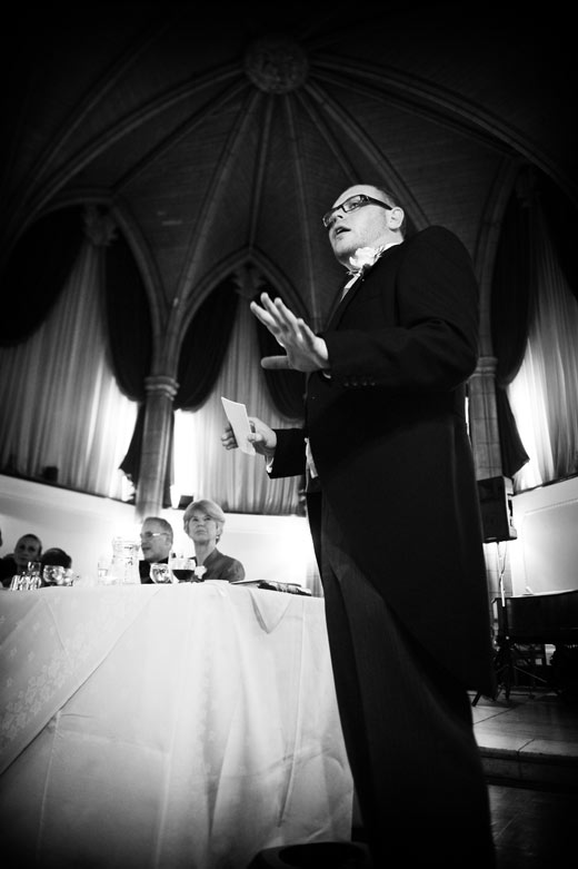 Mark Picken, who recently tied the knot, recommends the bullet point approach so that the speech isn't overly scripted and allows more interaction with the guests. "Also, taking a deep breath and remembering that these people are your friends and family, so they're all on your side, helps take away the nerves. We had our speeches fairly early on in the day, so it meant that I, the best man and my father-in-law could enjoy the bulk of the day without worrying about standing up."