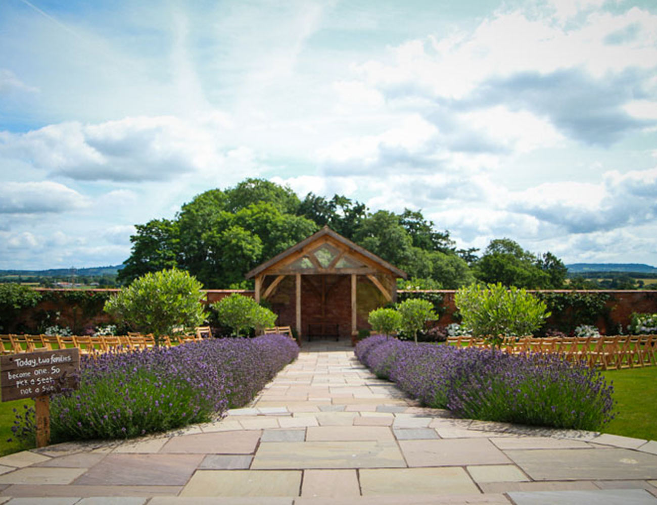 While the warm tones and cosy ambience make the barn a snug and romantic setting for a winter wedding, the picturesque grounds lend themselves to the dreamiest of summer celebrations. Located at the end of a beautiful natural aisle lined with lavender, the handcrafted oak arbour, set within the walled garden, is an idyllic al fresco backdrop for ceremonies. The walled garden also makes a perfect spot for a sun-soaked drinks reception: imagine drinking in the heady scent of lavender and sweeping views across the Blackdown Hills, while mingling with your nearest and dearest. As night falls, the walled garden is magically lit with up-lights, while firepits flicker and delight in the stone-flagged courtyard.