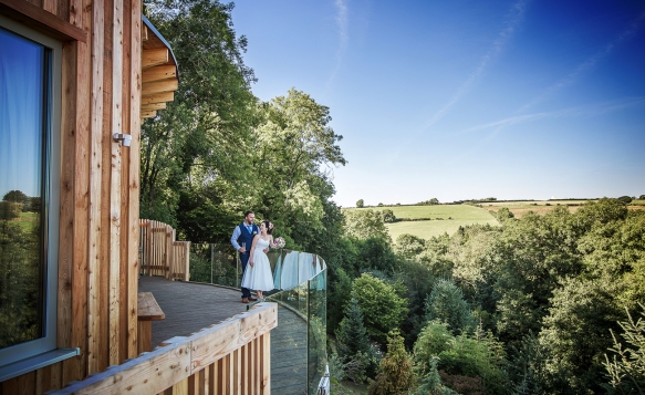 Tree Top Escape is an intimate and exclusive wedding venue in North Devon, offering beautiful celebrations up in the clouds; bring up to 14 guests to share your special day. Linked to the Tree House by a romantic wooden walkway and with a frameless glass balustrade and wide glass doors across two sides, The Nest appears to float above the countryside. Magical.
