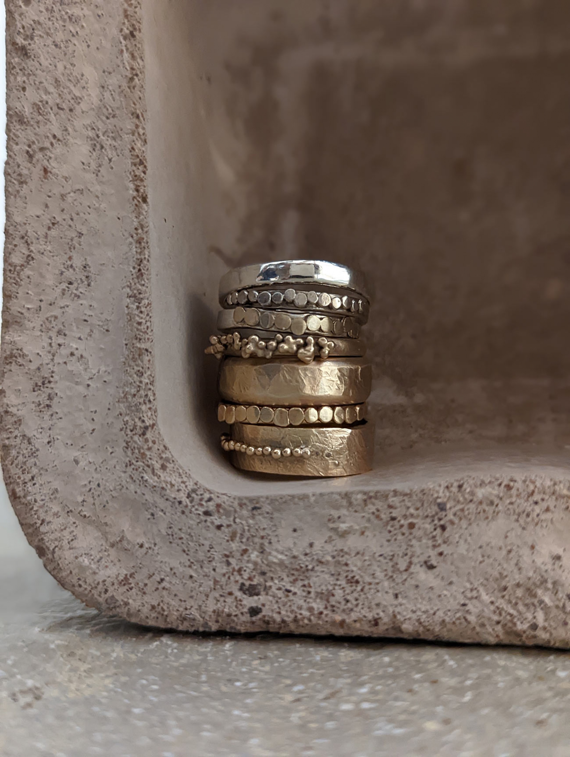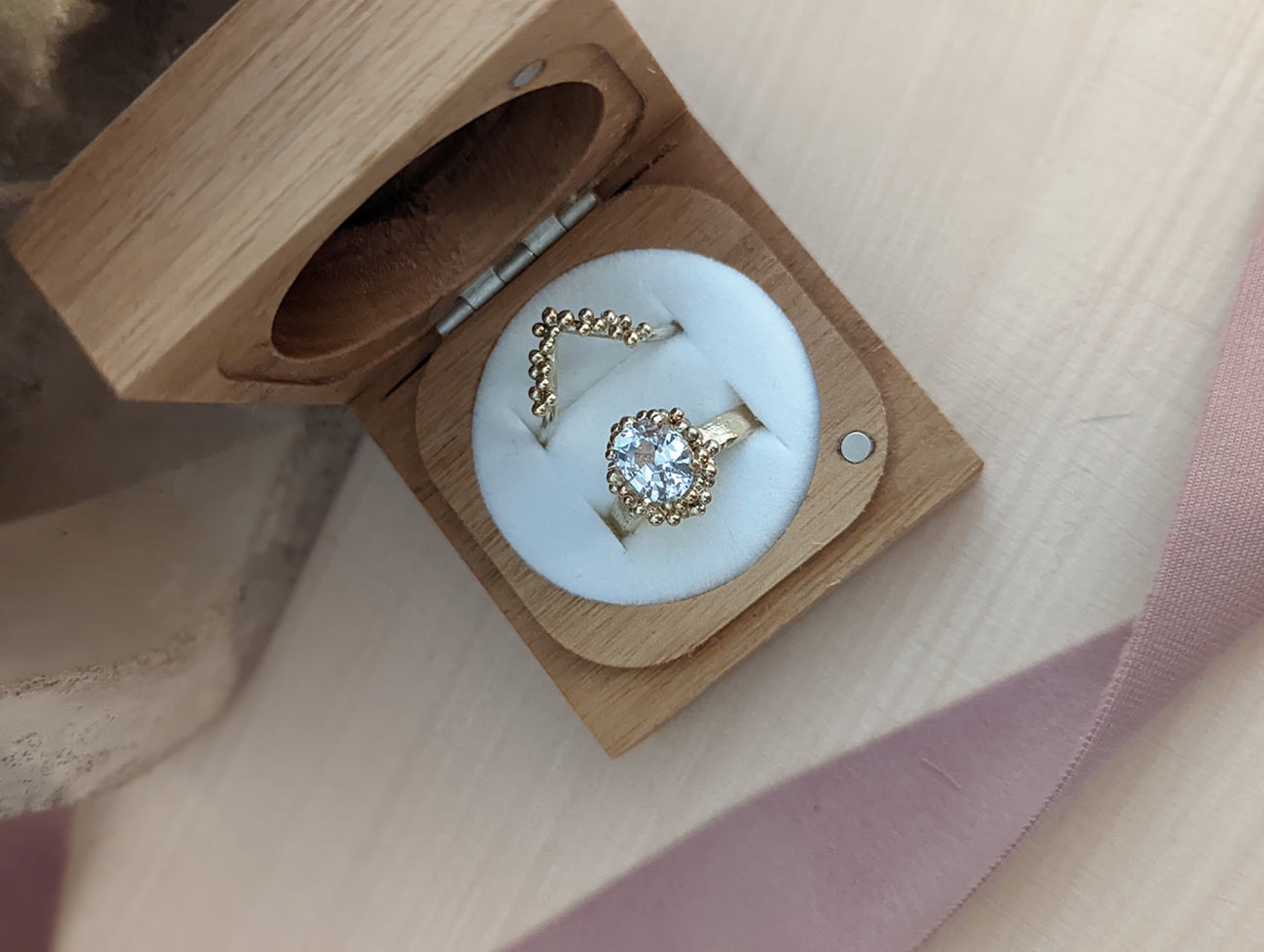 Tel: 07714 243669Crafting her unique granulation jewellery from her Devon studio, Milly Maunder's distinctive pieces blend her passion for traditional and ancient techniques with modern and organic design. From one-of-a-kind engagement rings, where gorgeous gemstones are hugged by striking granulated forms, to weddings rings ranging from sleek and simple to textured and dotted with diamonds, Milly's rings make for a truly captivating symbol of your union. Bespoke commissions are welcome and you can even make your own wedding bands under Milly's expert tuition. Her wedding band workshops include everything from materials and hallmarking to refreshments throughout the day for a special and sentimental piece to treasure.