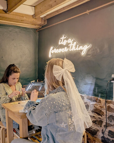 Tel: 07547 113944Forever Bracelets with Your Forever Bride Tribe Make your hen party unforgettable with our permanent bracelet experience, custom-fit, clasp-free, and made to last a lifetime, just like your friendships. We'll provide everything for you, including Prosecco, exclusive group discounts, and a free silver charm for each guest! Each person can choose from one of our four sterling silver bracelets, with the option to upgrade to solid gold at 10% off. Enjoy a complimentary glass of bubbles on arrival and 10% off any in-studio purchases on the day.