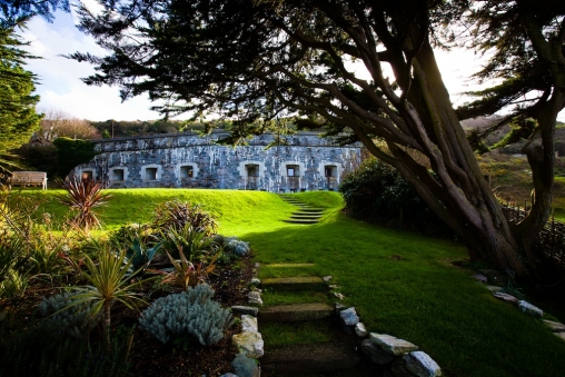 This extraordinary Napoleonic fort stands in a wildly dramatic location. The building looks out across miles of ocean; you'll be able to gaze across the rugged crags and folds of the Cornish coastline that curl into the distance as far as the Lizard peninsula. Sweeping lawns and wildflowers blanket the beautiful grounds and a path leads down to the venue's very own secluded beach.