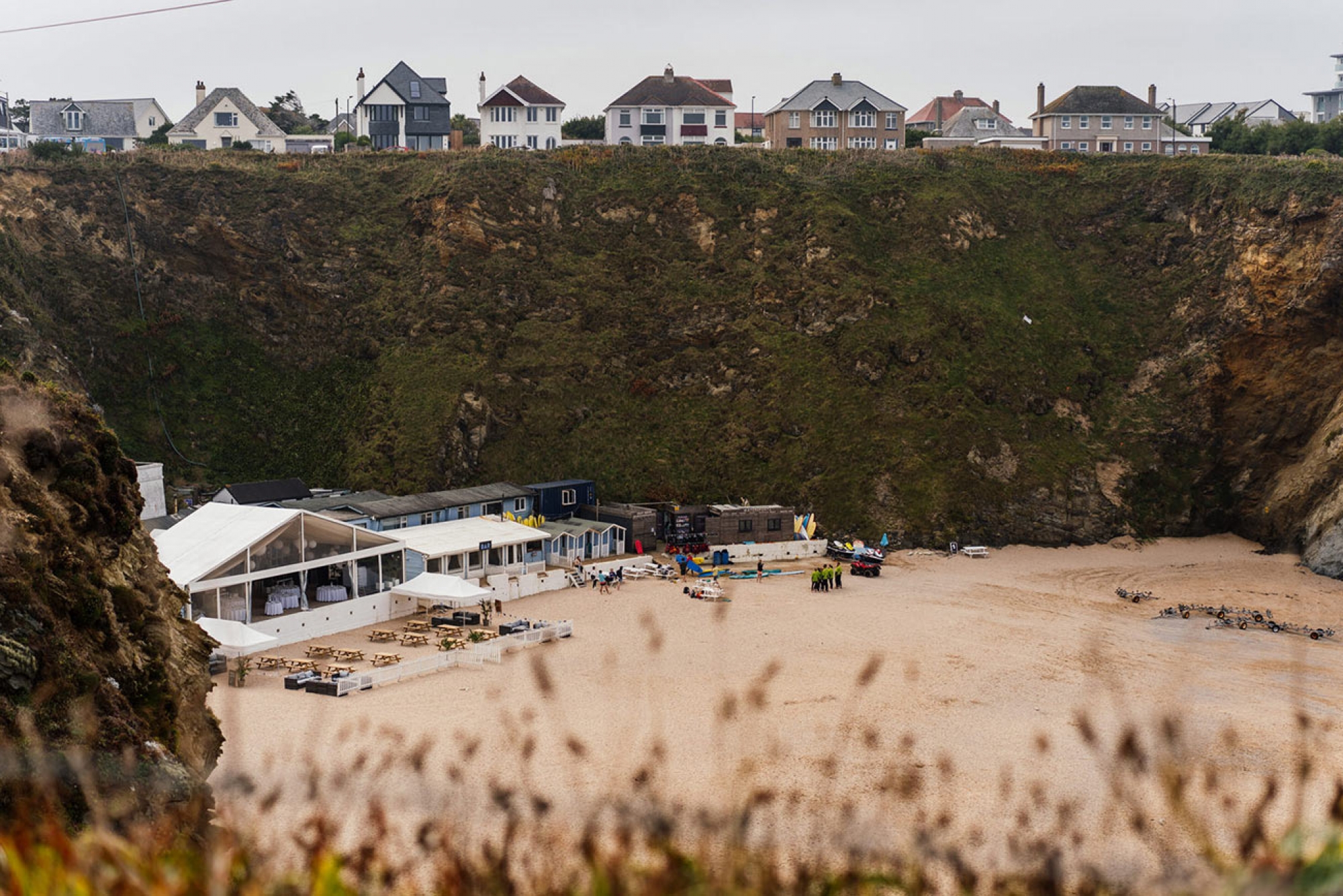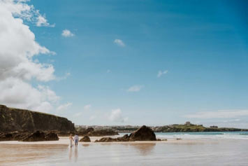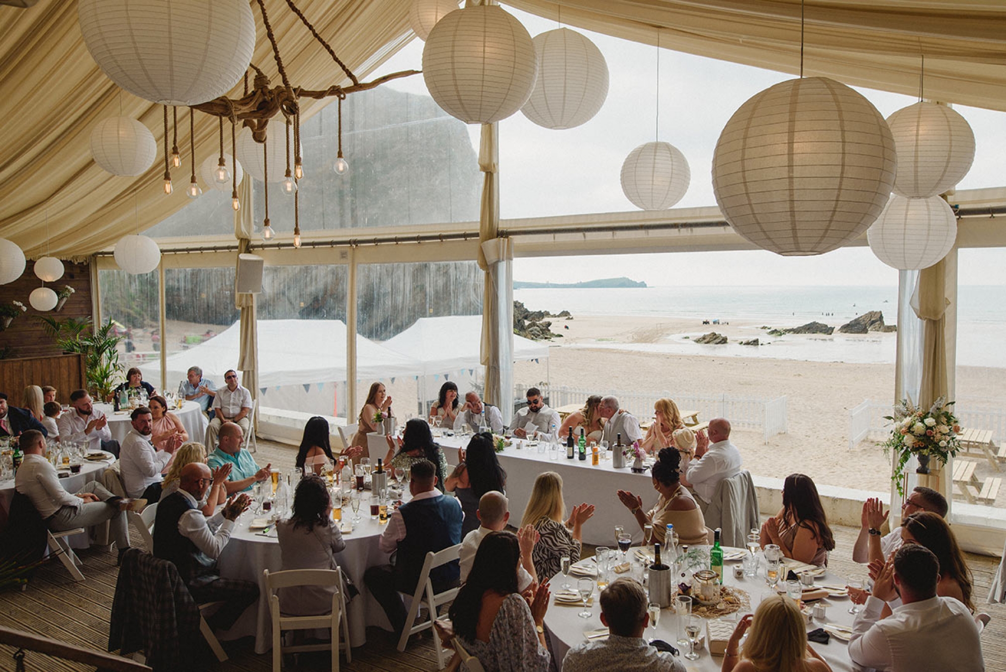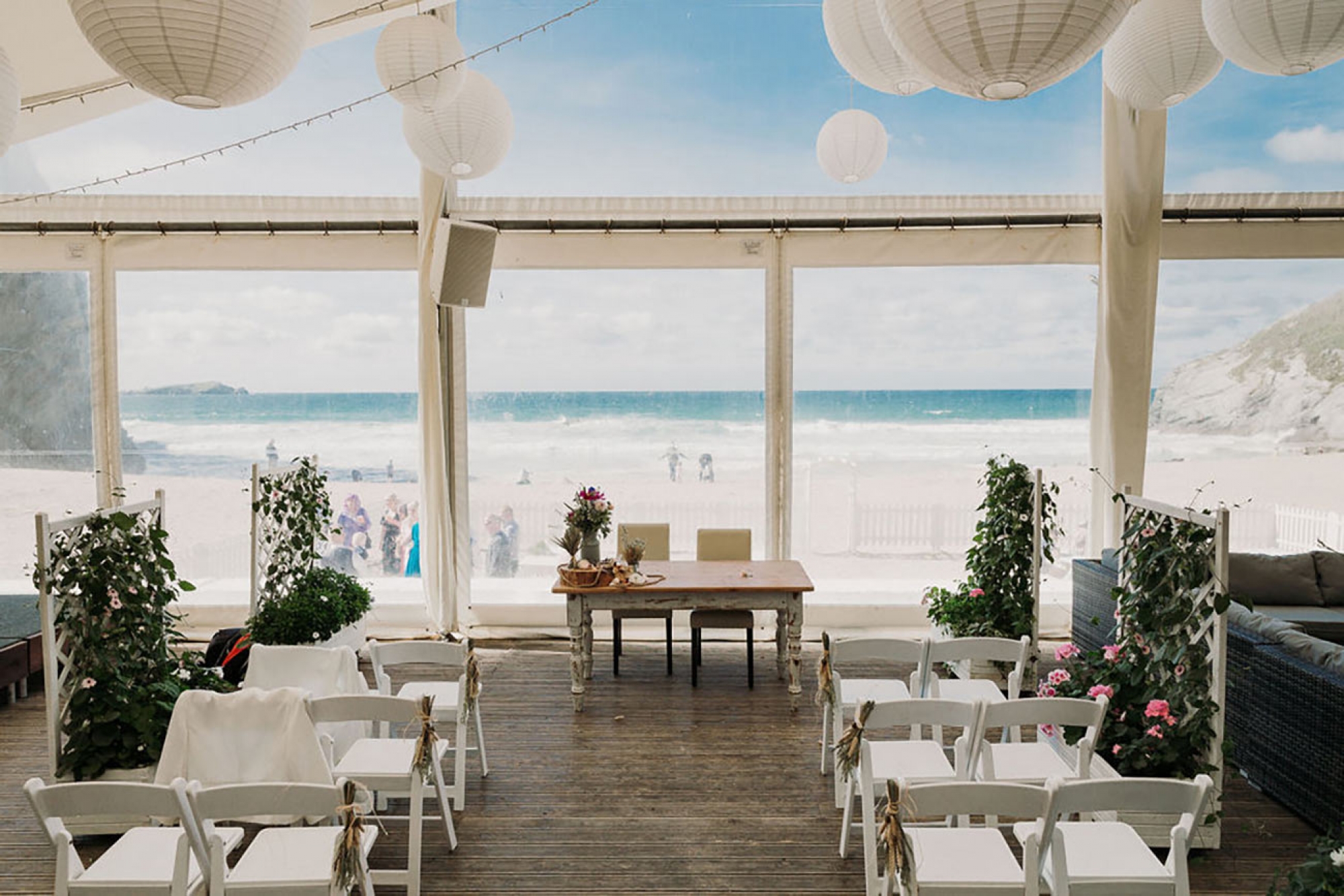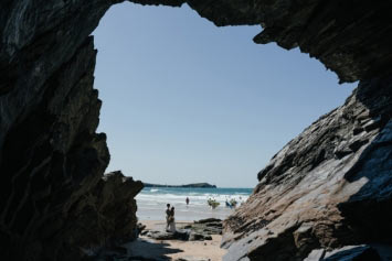 Lusty Glaze Beach in Cornwall - named the UK's Best Coastal Wedding Venue and Britain's Best Beach - is a truly unique venue. On golden sand and below stunning cliffs, this horseshoe-shaped private cove gazes out over one of the best surf beaches in Cornwall. In summer, the sun sets over the sea, directly in front of the covered beach decking where your guests will be soaking up the atmosphere with sandy feet and happy faces.