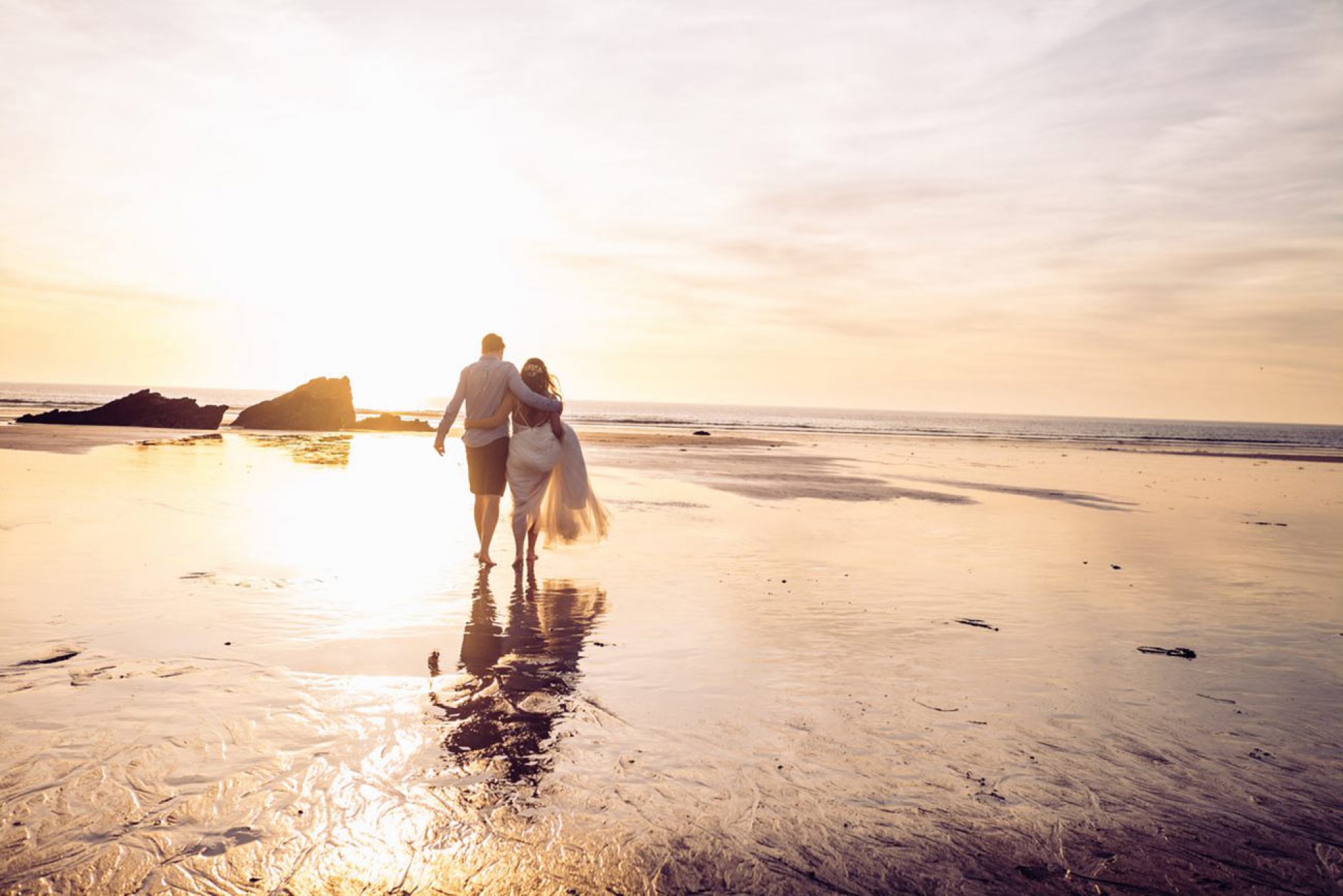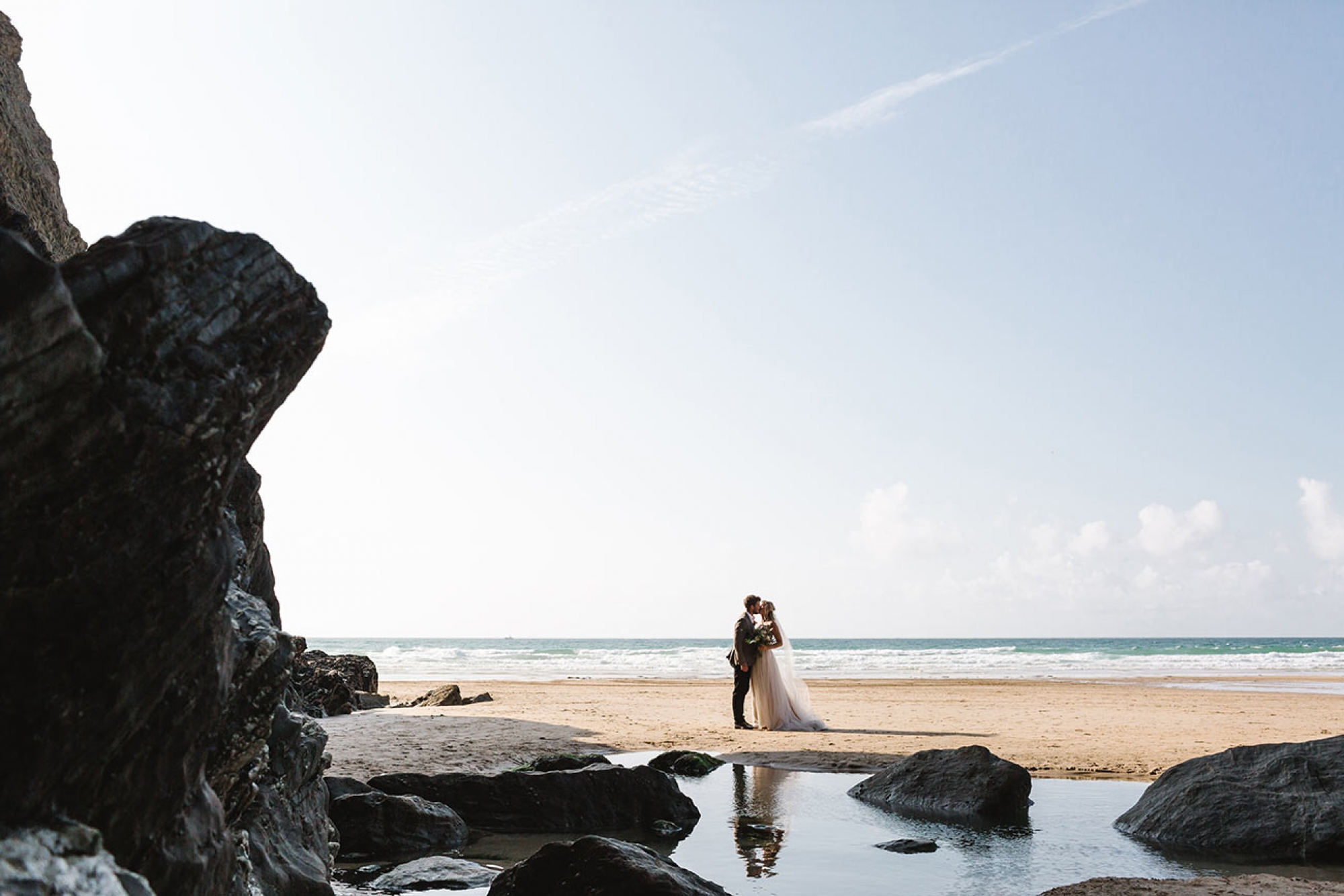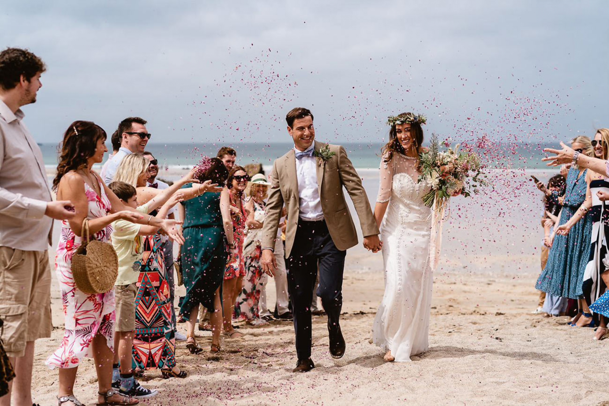 Lusty Glaze Beach in Cornwall - named the UK's Best Coastal Wedding Venue and Britain's Best Beach - is a truly unique venue. On golden sand and below stunning cliffs, this horseshoe-shaped private cove gazes out over one of the best surf beaches in Cornwall. In summer, the sun sets over the sea, directly in front of the covered beach decking where your guests will be soaking up the atmosphere with sandy feet and happy faces.
