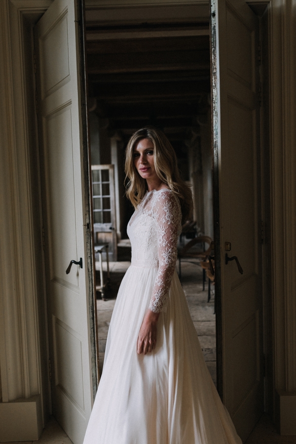 Then there's the aptly named, Fleur. Flattering all forms due to its beautifully sculpting sweetheart bodice and full flowing silk chiffon skirt that sits over a lightweight petticoat and flares out into a gorgeous grand circle train, the dress also boasts a detachable long sleeved, French lace jacket. Dreamy indeed.