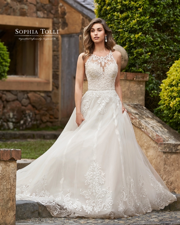 Then there's Australian designer, Sophia Tolli whose unique fusion of classic and couture ensures every bride will find something incredible to suit, from strapless ball gowns to A-lines and demure halter styles, with many featuring Sophia's signature draping and corset backs. "My collection has two distinct feelings: soft romanticism and traditional bridal drama. My signature style will always be gowns with an exceptional fit and cut," says the celebrated designer.