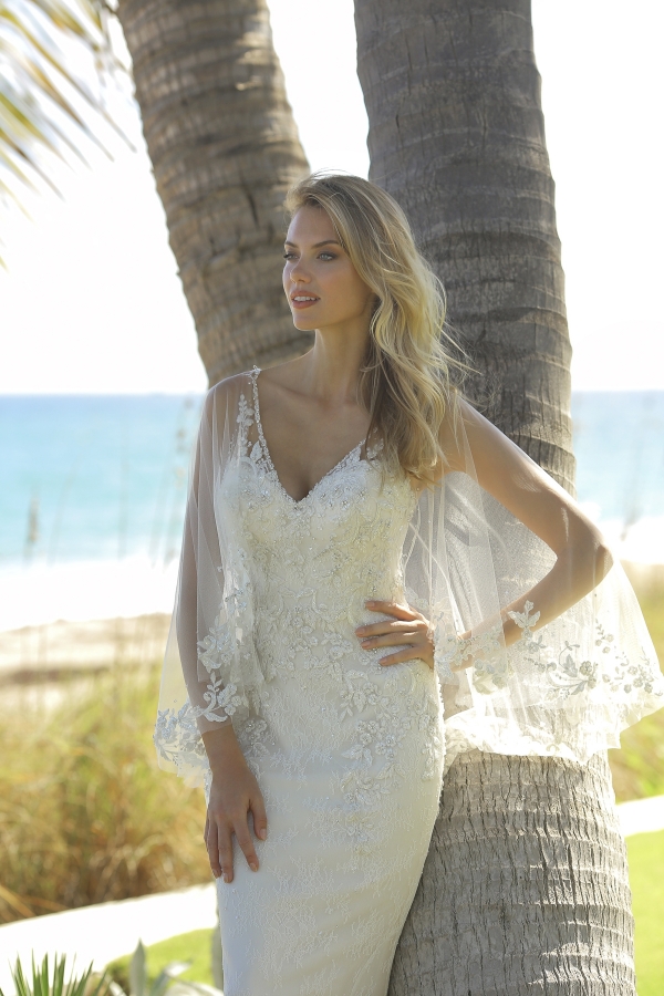 From soft A-lines made with floral embroidered organza featuring plunging V-necklines and sheer side panels complete with beading and rhinestones to trumpets with sheer straps and capelet overlay, and ball gowns with V-neckline, off-the-shoulder straps and floral appliques - it's an eclectic yet romantic combination of the latest looks and must-have embellishments alongside Randy's signature style.