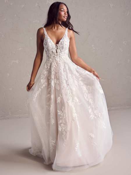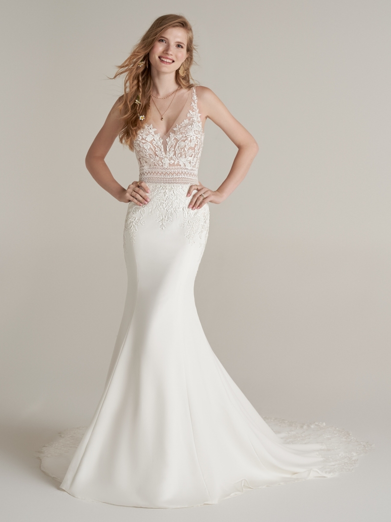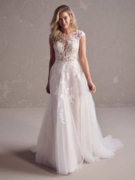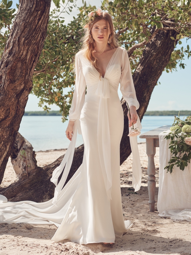 Stocked at Pirouette in Exeter, Devon, Rebecca Ingram’s latest collection of wedding dresses is awash with fresh and romantic fashions, from V-back sheaths and Mikado off-the-shoulder A-lines to tiered tulle ballgowns and beaded chiffon sheaths. Add textured illusion motifs, eyelet lace bodices, bishop sleeves and shimmery layers for a modern take on everything from vintage and fairytale to boho and boudoir glamour.