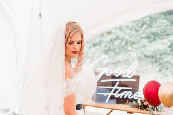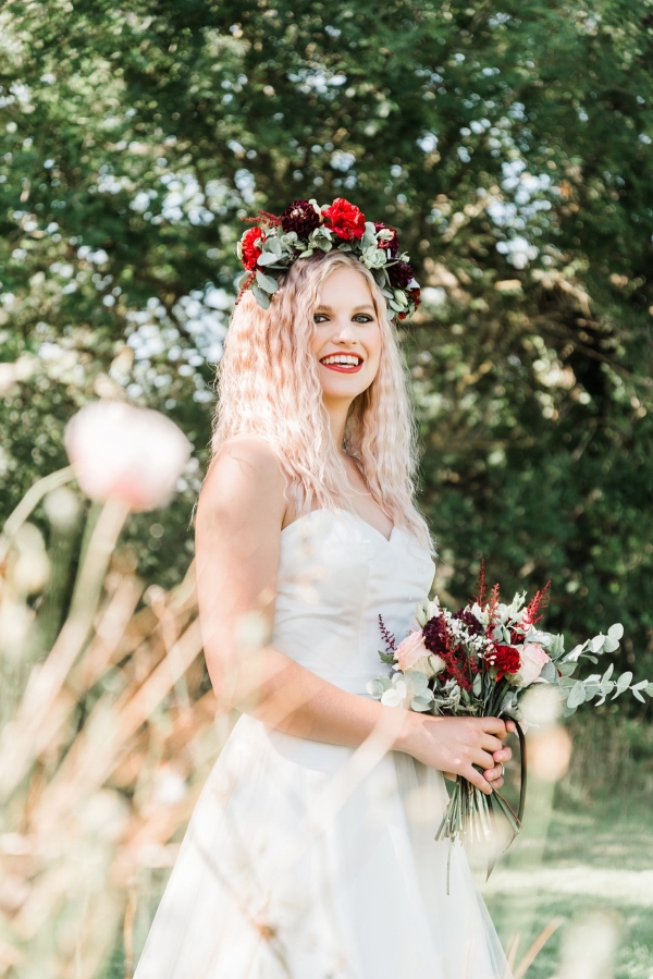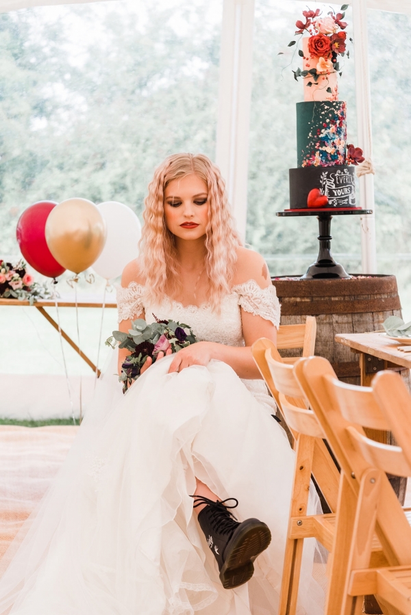 'This shoot was all about having fun with lots of colour, unique elements and smiles all round,' says photographer and shoot coordinator Hannah Barnes. 'I wanted to create a styled shoot so that brides-to-be who have an alternative style can see that they can still be a bride and have a fantastically beautiful wedding too.'
