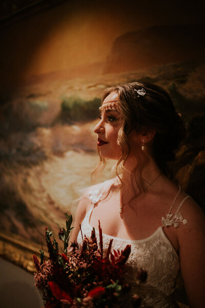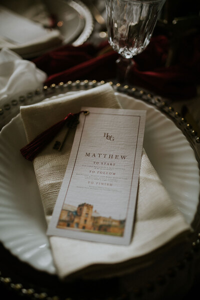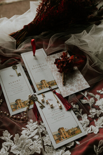 It’s the dream backdrop for a styled shoot that channels Art Nouveau elegance with a decadent autumnal twist. “The creative direction, inspired by autumnal Art Nouveau, marries sophistication with modern celebration,” explains content creator and shoot coordinator Hannah of Wild Cherry.