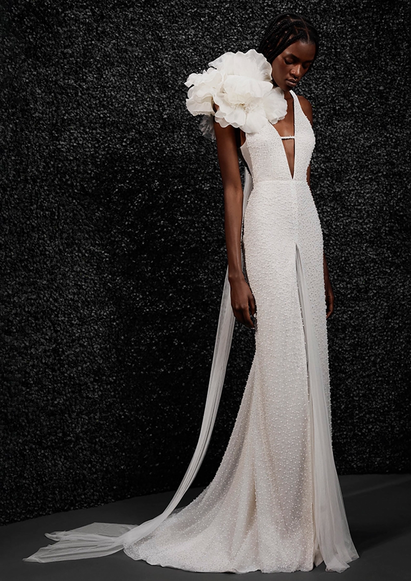Available at The Ivory Lounge in Plymouth, Devon, the latest Vera Wang Bride collection combines modern silhouettes with elegant and romantic design and pared-back chic through to full-blown drama. From exquisite ballgowns oozing modern elegance to romantic fishtails, seductive sheaths and sexy mini skirts, the jaw-dropping collection boasts something for every bride. Detail-wise, think sheer sleeves, sparkly fabrics, statement cuts, stunning corsetry and dance-ready confections of the dreamiest variety. There’s the spellbinding romance of Yvette, a ballgown with a sweetheart bodice and layers of soft tulle; the beaded beauty of Lys with its elegant mermaid silhouette and draped Juliette sleeves and the striking cut of Eliette with its folded architectural design in soft Mikado, tulle skirt and organza floral detailing. And for minimalist chic, we love the effortlessly stylish aesthetic of Amandine with its plunge back and subtle draping.