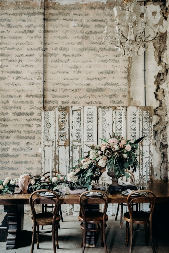 An industrial luxe aesthetic sets the scene for a coolly contrasting celebration