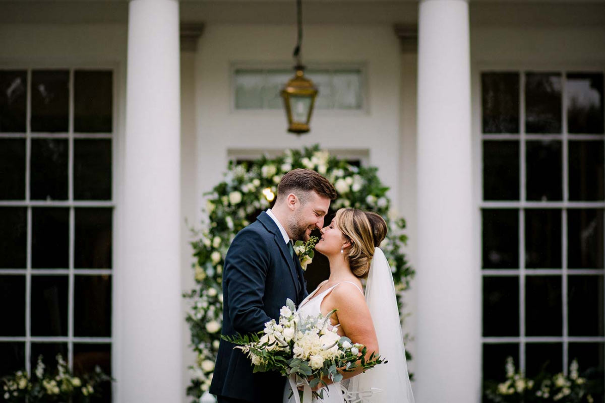 The wedding began with an emotional and highly personal ceremony held beneath the venue's stunning portico entrance dressed beautifully with a flower arch. 'We'd already had our legal civil ceremony, so we asked Adam's dad Nigel to conduct the symbolic wedding ceremony. It was so lovely to have such personal wedding vows. He absolutely smashed it and it meant a lot to us to have him involved,' says Chloe.