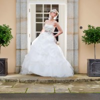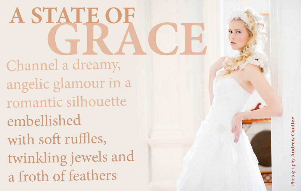 Channel a dreamy, angelic glamour in a romantic silhouette embellished with soft ruffles, twinkling jewels and a froth of feathers.