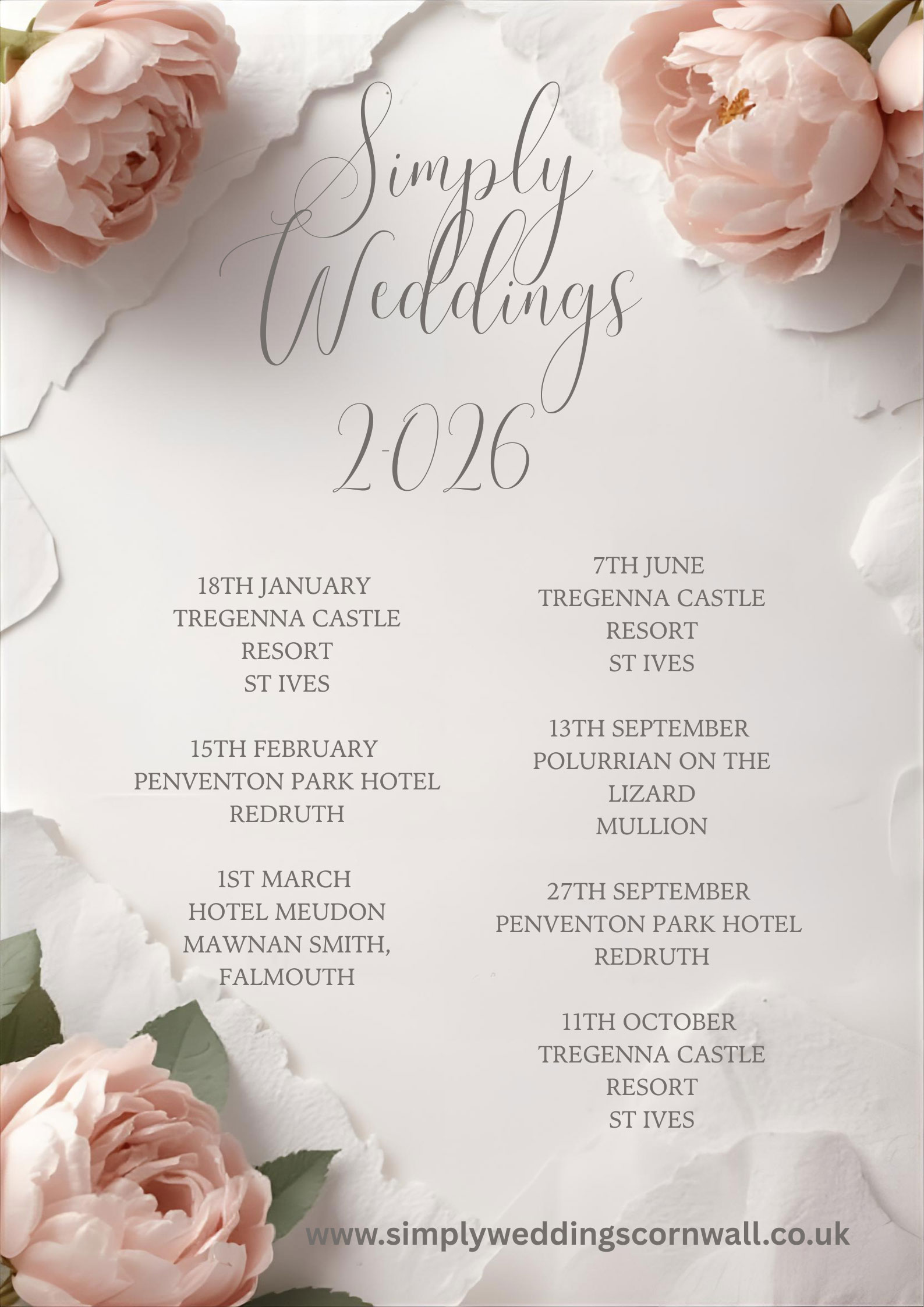 Round off the season in style with an autumn finale at Tregenna - one of Cornwall’s most iconic wedding venues. Meet a handpicked selection of Cornwall’s top wedding suppliers, enjoy live demonstrations, a catwalk show, and the not-to-be-missed Bridal Booty: the series of ever-popular one-to-one planning sessions. Whether you’re newly engaged or fine-tuning the details, this is the perfect place to begin your wedding journey. Free entry and free parking. Get your tickets here