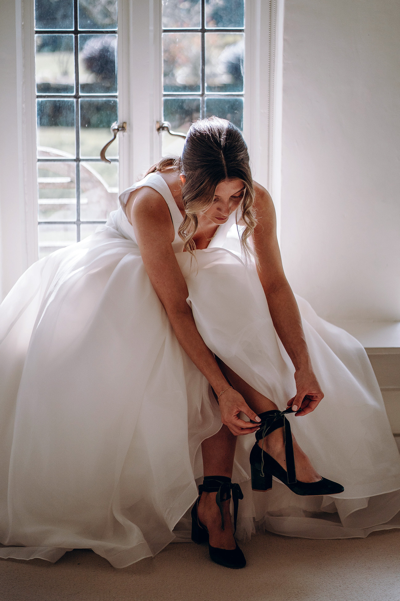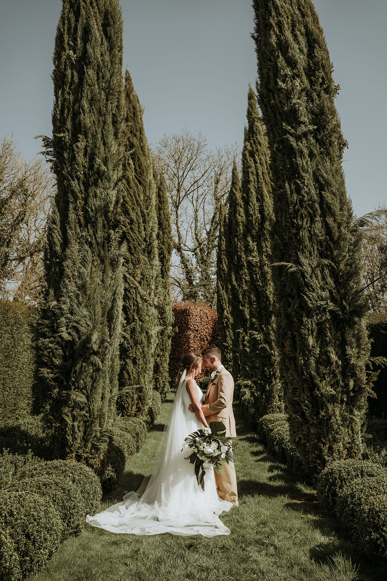 “I had an idea for a ceremony backdrop that was made entirely from greenery to frame the couple and make them centre stage without taking away the grandeur of the breathtaking doors that lead into The Great Barn. The vision grew from here,” explains Natalie Hyland of Hyland Weddings & Events, who styled and coordinated the shoot alongside Stacey Gray of Glas Events.