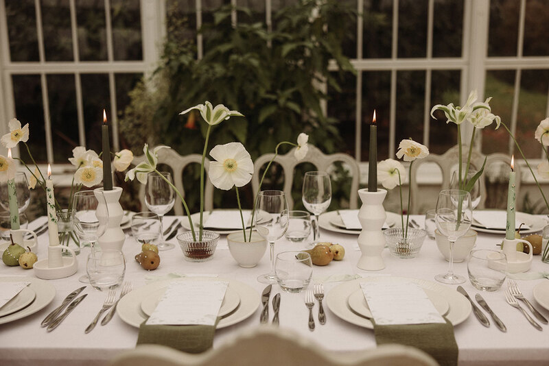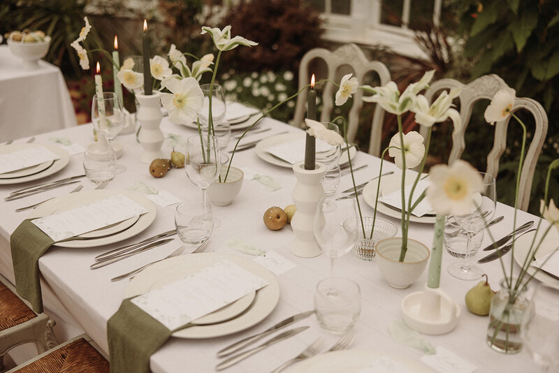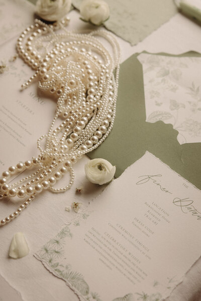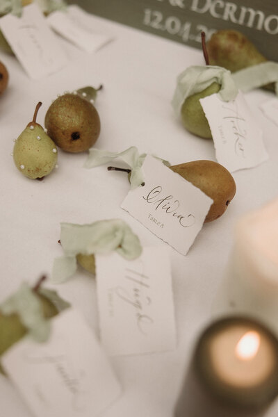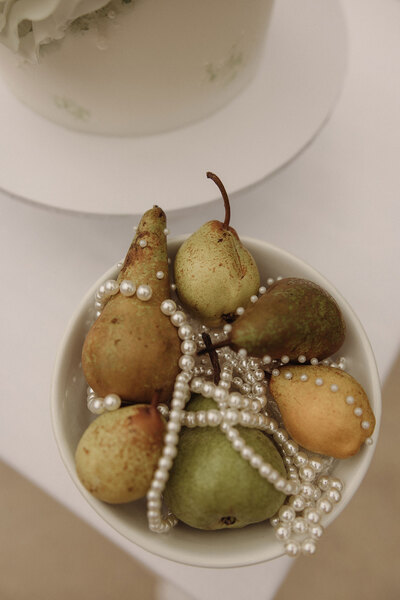 Inspired by the natural elegance of pears and the timeless allure of pearls, this styled shoot exudes understated sophistication. A sage green and white palette sets the tone, enriched with botanical details to create a wedding aesthetic where natural beauty takes centre stage.