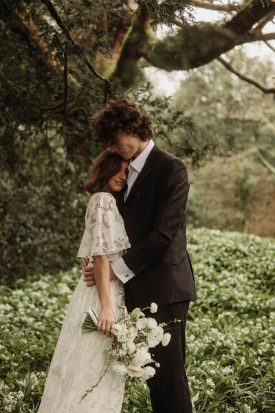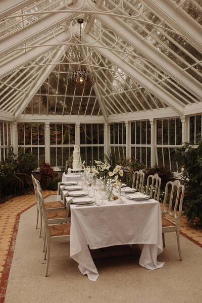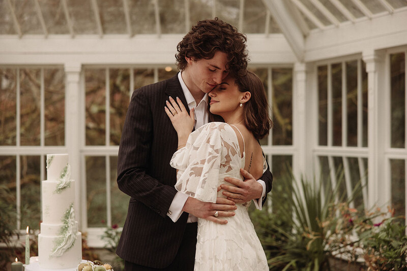Set in the enchanting woodland gardens and light-filled conservatory of Burncoose House in the early days of spring, the Georgian house’s opulent interiors and lush surroundings infuse the scene with a sense of cool drama and decadence.