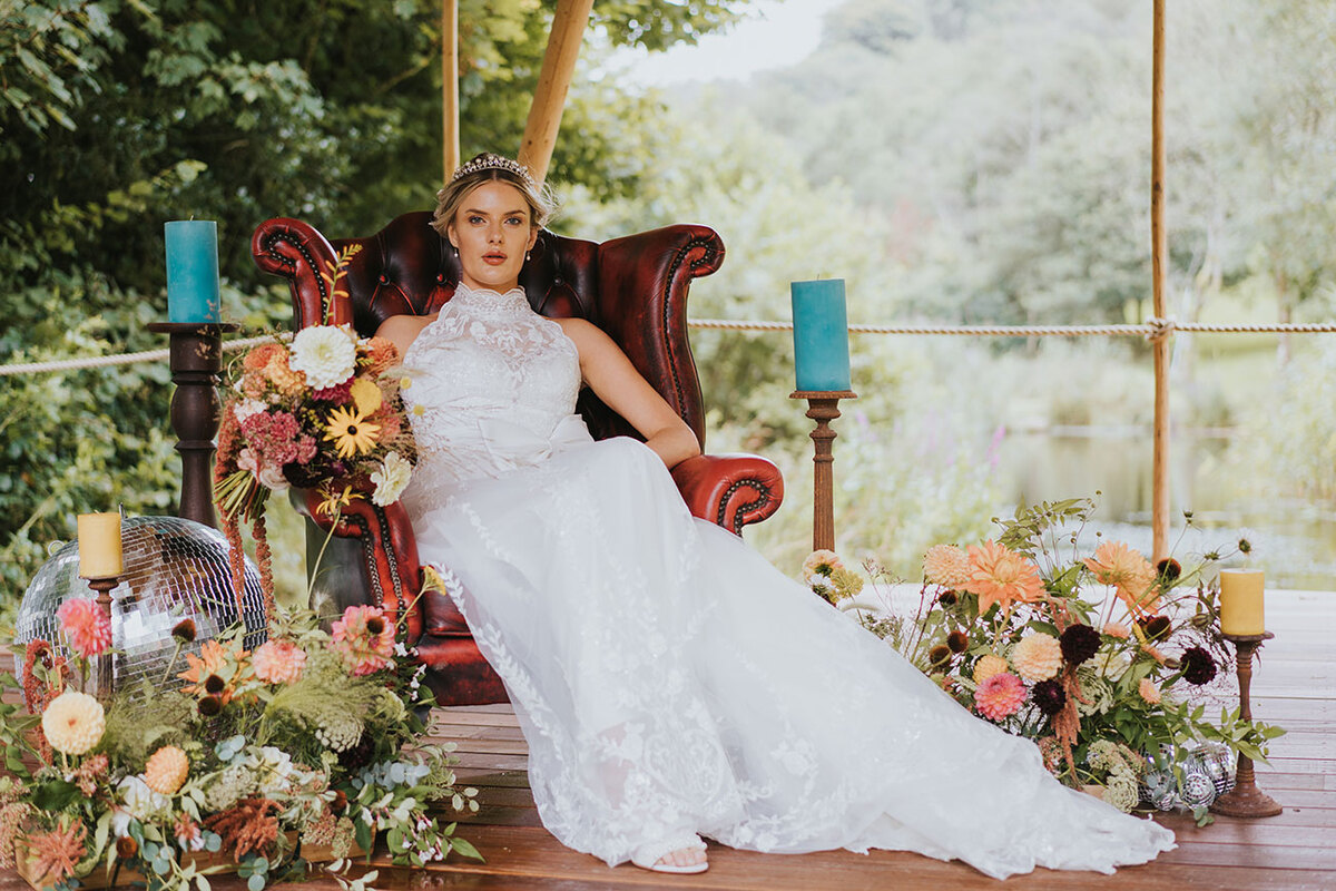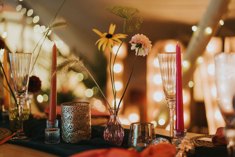 Blending the indoors and outdoors to evoke a palpable sense of the season, this styled shoot at HARTA Retreat in North Devon sees the venue’s scenic surroundings merge with gorgeous décor. Taking an autumnal palette fused with deep berry tones and bright colour pops, the look is one of foraged beauty with a fun and glamorous twist.