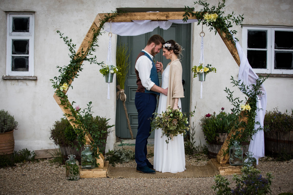'Creating an eco wedding with a luxury twist was at the heart of this shoot,' says photographer Laura Farmer of Freeformimages Photography. 'A wedding at River Cottage will always inspire and enchant: nestled in a picturesque valley on the Devon-Dorset border surrounded by the rolling fields and beautiful countryside, it's the perfect backdrop.'