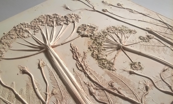 "I spent much of my childhood exploring the woods and fields near my home, immersed in nature. This led to a career in horticulture, which I draw upon in my plasterwork," says Jess Harrington from Botanical Tiles. "I'm inspired by nature generally, plants specifically, and I'm entirely self-taught."Working from her cottage in rural north Cornwall, Jess uses flowers and leaves to create botanical artworks by impressing the plants into clay and then casting the impression as a plaster slab. "There are a number of variables that I can control during the process, which allows each panel to evolve quite organically. Each impression is truly unique," she explains. "The plaster records the patterns and textures of the flowers with such delicacy, and creates beautiful natural art pieces."