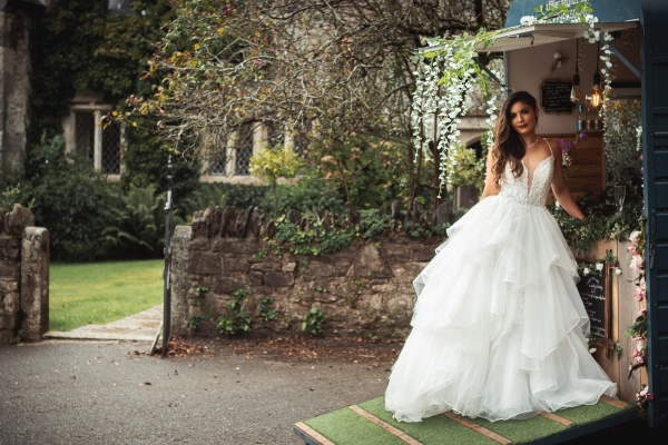 Outside, the stunning rural surrounds are naturally dressed for the occasion, providing a plethora of leafy backdrops for the bride to explore Pengenna's range of oh-so pretty places to pose, from the lush greenery of the lawn to the delicate lavender bushes and deep blush fruits of the apple tree - and even a vintage drinks van.