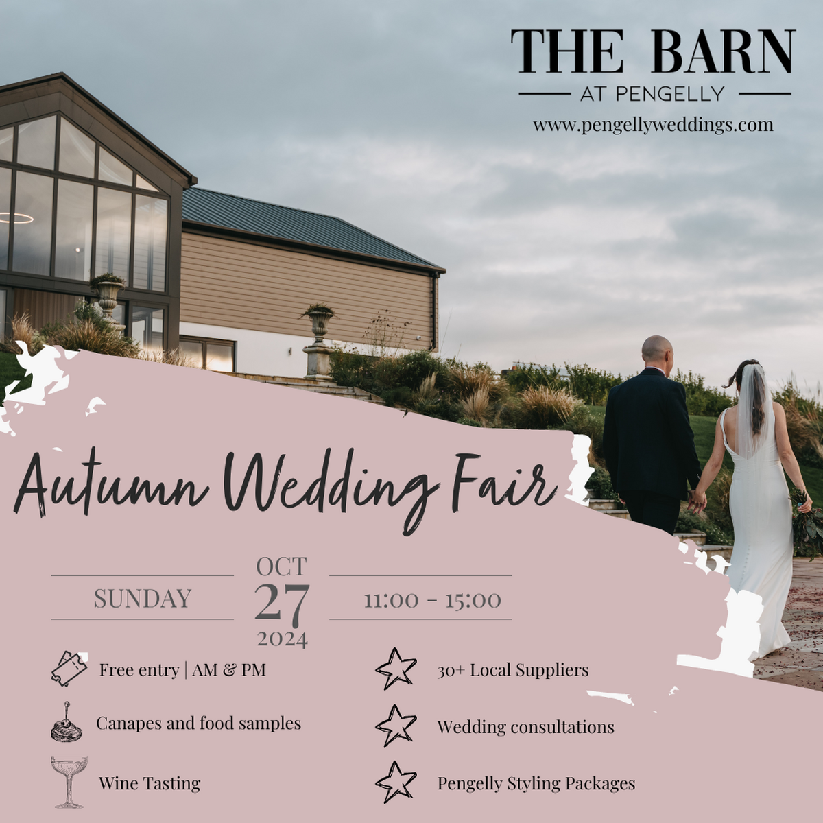 If 500 acres of picturesque Cornish farmland sounds like your dream scenario wedding backdrop, make a date in your diary to explore The Barn at Pengelly at their autumn wedding fair on Sunday 27th October (11am-3pm). Tickets are free and offered in two slots, at 11am and 1pm.