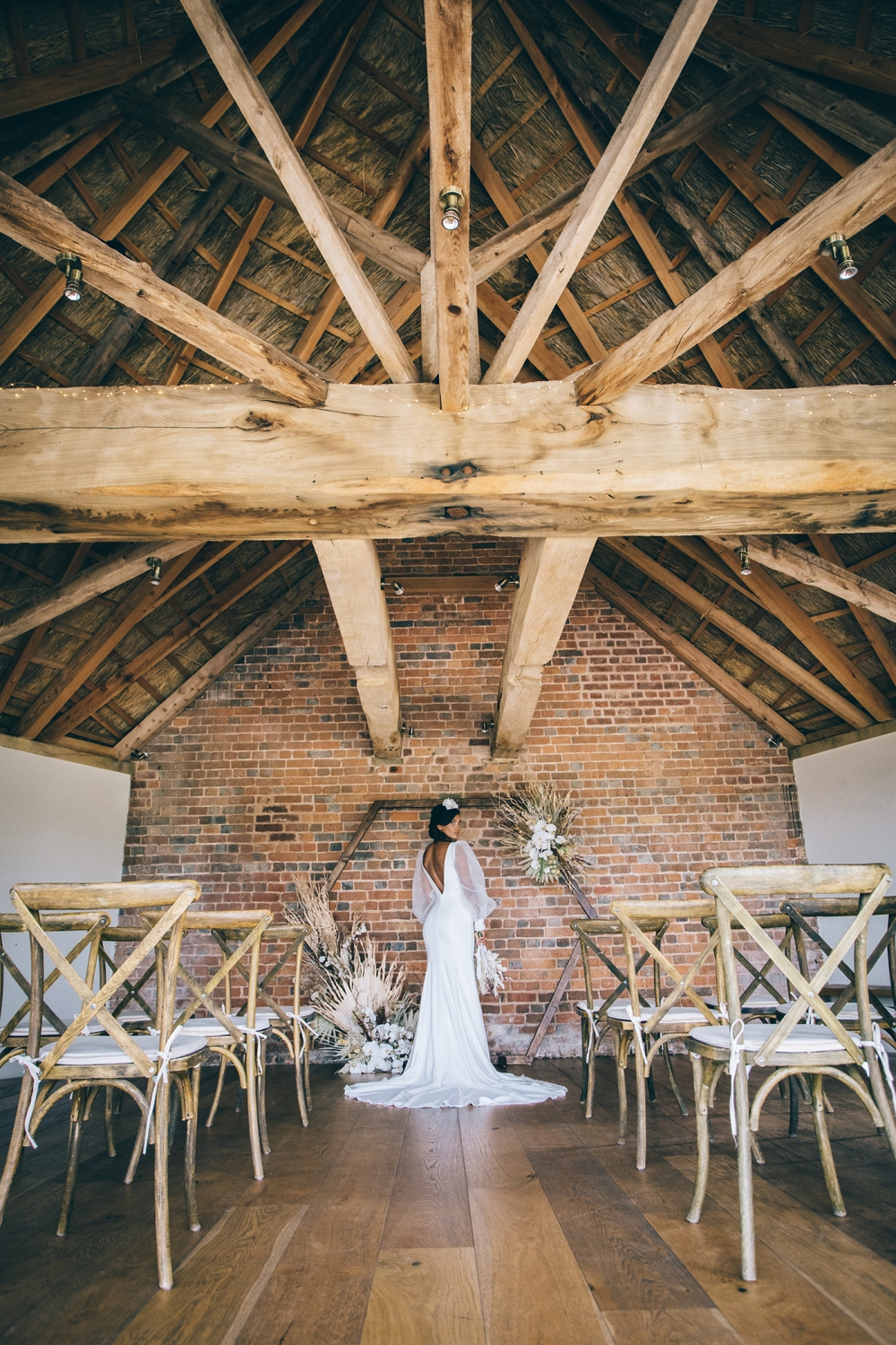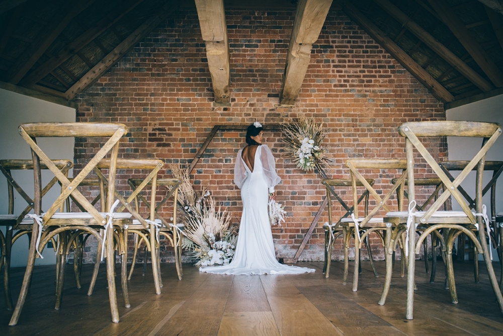 Nestled deep in the Devon countryside, the rural location of Brickhouse Vineyard, together with its charm-filled 18th century Round House, are amongst its many romantic draws for couples. But, as Nikki asserts, this doesn't have to dictate your wedding styling. 'A rustic countryside venue doesn't have to be paired with a rustic style,' she says. 'Stunning modern dresses and statement accessories are still allowed!'