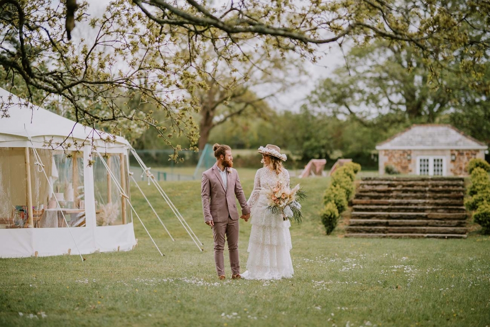 Set amidst a secluded valley in the heart of Cornwall, new wedding venue Boconnion offers romance and rural charm in equal measure. The cluster of refurbished buildings, including a Georgian manor house, farmhouse, and reception barn, together with acres of gardens and ancient oak woodland, also offers a versatile canvas for a wedding, as this styled shoot illustrates in oh-so dreamy style.