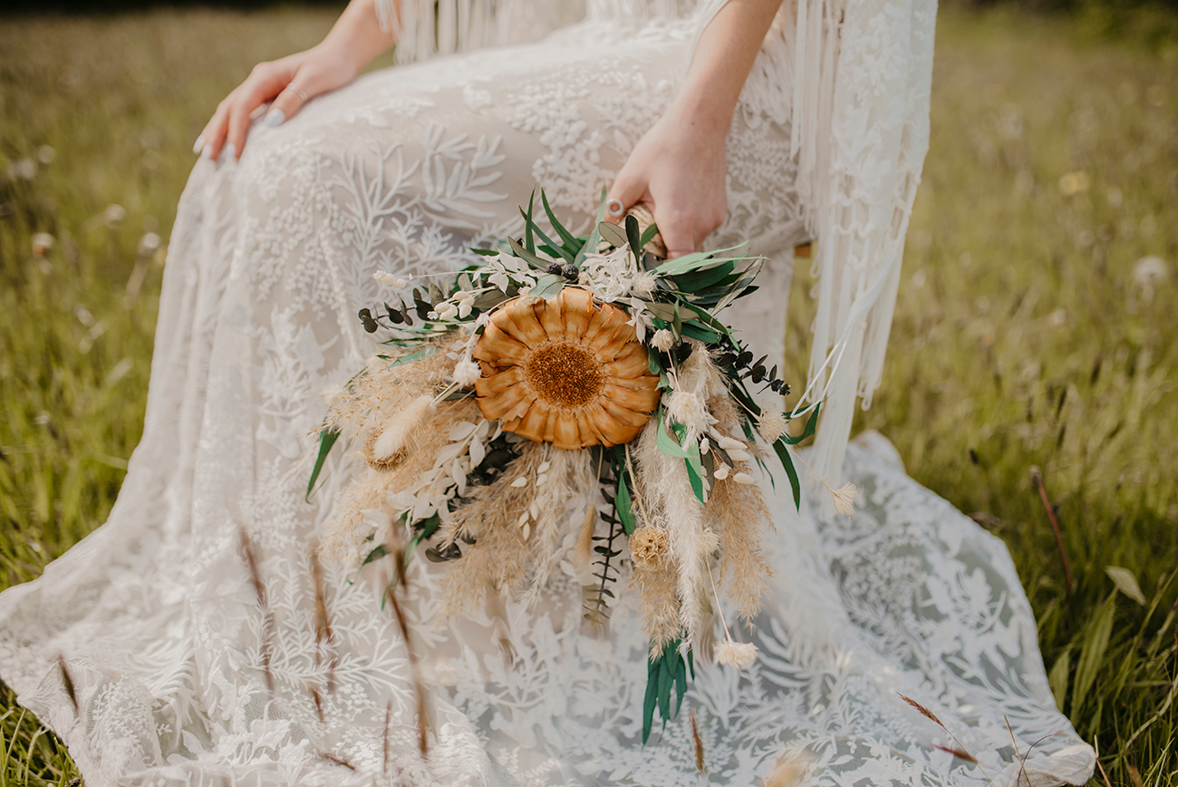 “The rustic boho vibe is going nowhere anytime soon; it's a timeless mood board that works perfectly in Cornish settings,” explains Sophie Walker-Sünderhauf of The Little Details by Sophie who coordinated and styled this shoot. “This shoot offers a twist on a sage wedding with an added rustic terracotta vibe.”