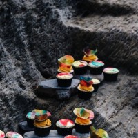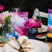 The cake and stationery evoked an abstract art element, which contrasted brilliantly against the rugged Devon coastline. One of the coves made a stirring, craggy backdrop for an altar, while the colours of the styled table, brimming with cakes, flowers and stationery, popped perfectly against the rocks.